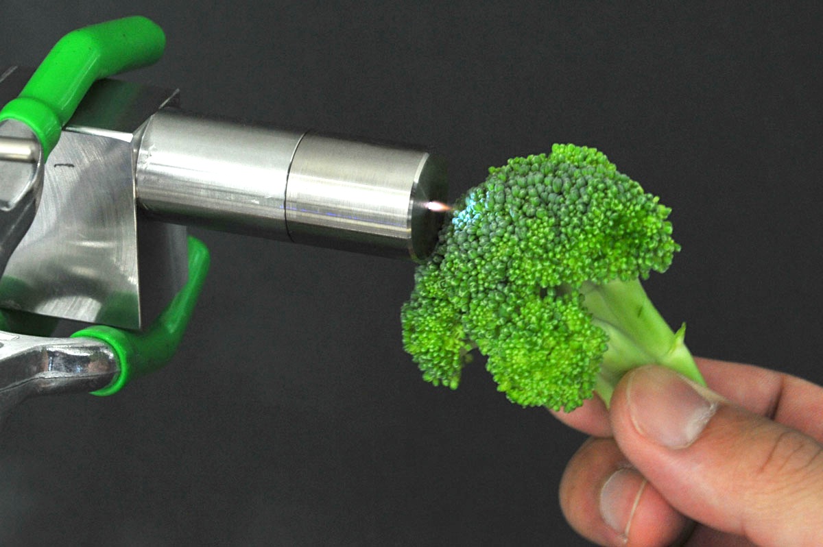 マルチガス温度制御プラズマジェットを植物細胞に照射中