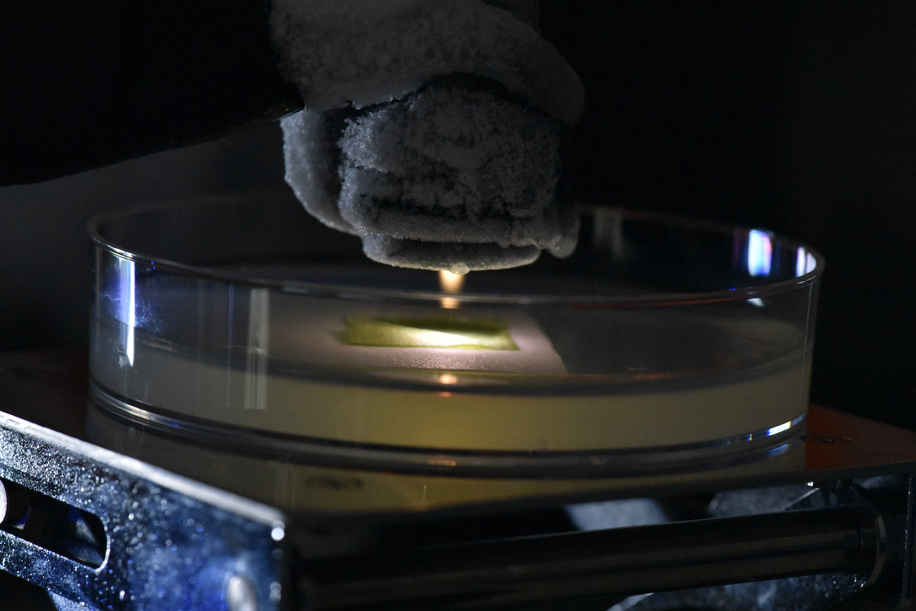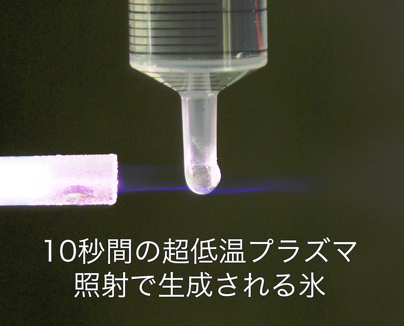 氷に照射すると,ちょっと溶ける 少し下の温度制御プラズマでは,プラズマ照射で氷を生成する事に成功しています